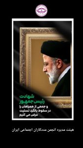 هیات مدیره انجمن مددکاران اجتماعی ایران فقدان مقامات بلندپایه کشور از جمله رئیس جمهوری و وزیر امور خارجه و سایر هم وطنانی که در این سانحه جانشان را از دست دادند را به عموم مردم کشور و خانواده و سایر بازماندگانشان تسلیت عرض می نماید.