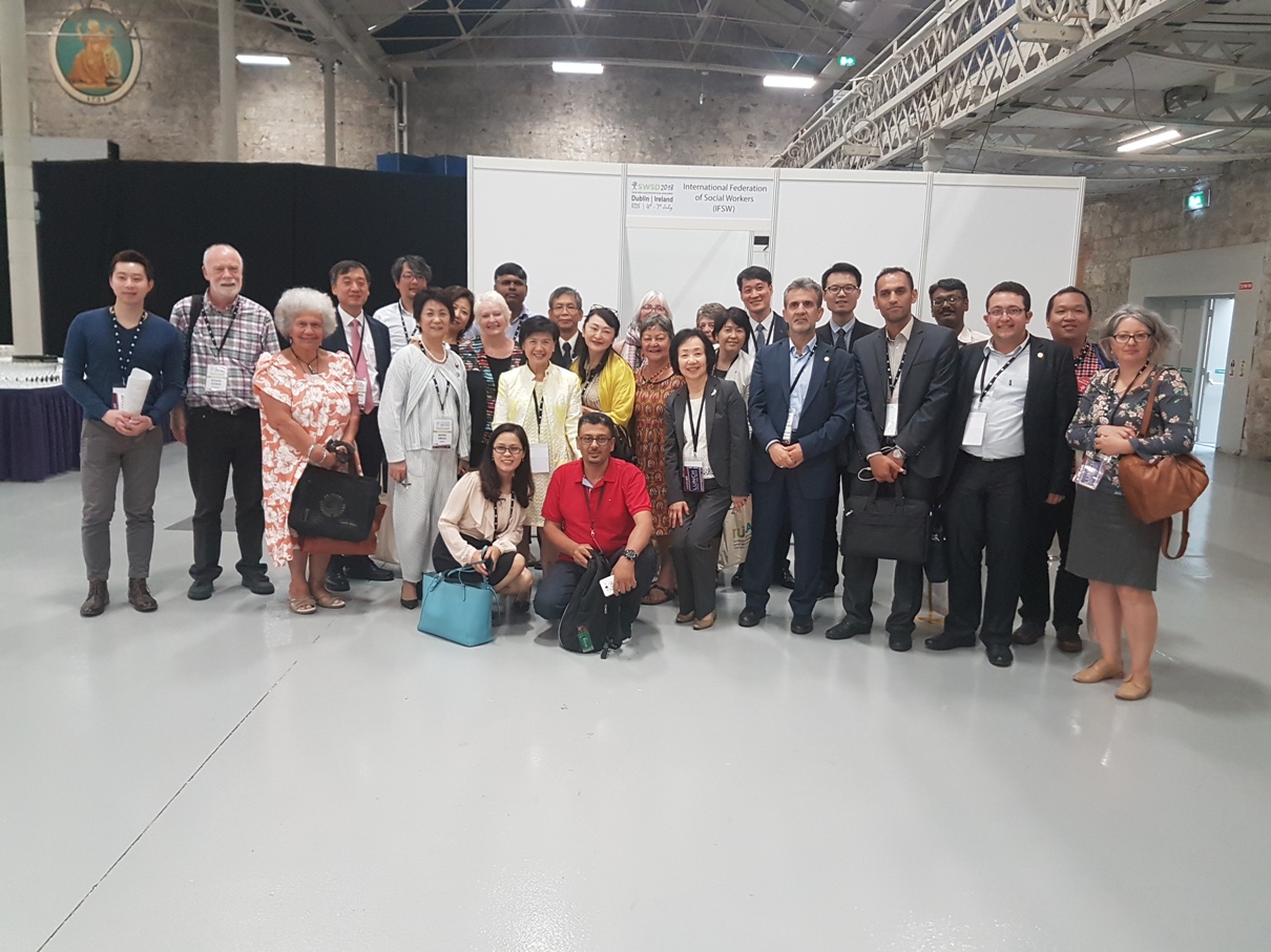 مجمع عمومی فدراسیون بین المللی مددکاران اجتماعی که هر دو سال یک بار در یک کشور برگزار می شود این بار در جولای ۲۰۱۸ (تیرماه ۱۳۹۷) در دوبلین ایرلند جنوبی برگزار شد.