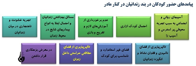 – حضور کودک در کنار مادر در شرایط غیر استاندارد در زندان می تواند تبعات منفی بر رشد شخصیت و سلامت اجتماعی روانی و جسمانی کودک داشته باشد.