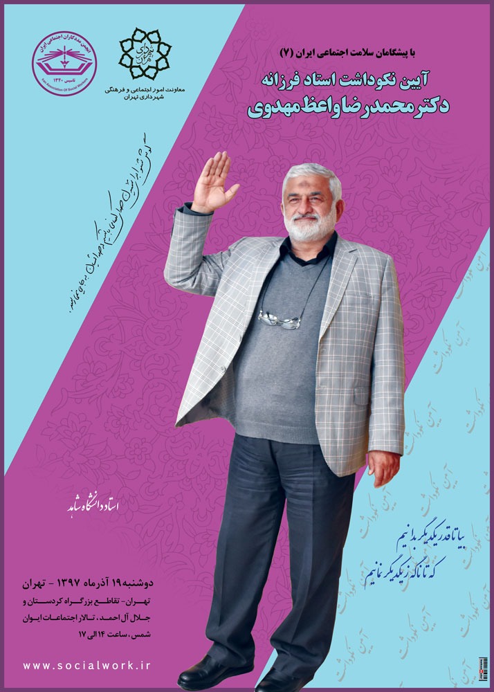 در همین راستا، هیات مدیره این انجمن تصمیم گرفت تا با همکاری معاونت امور اجتماعی و فرهنگی شهرداری تهران هفتمین مراسم از مجموعه نکوداشت پیشگامان سلامت اجتماعی را در تجلیل از استاد فرزانه جناب آقای دکتر محمد رضا واعظ مهدوی برگزار نماید.