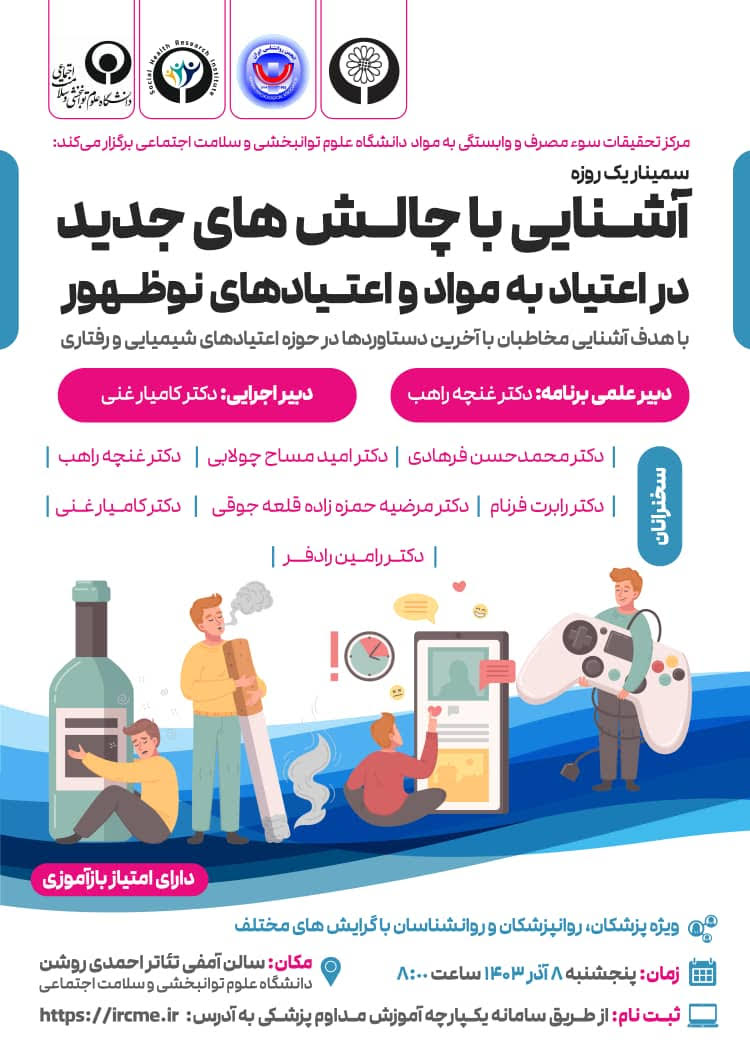همایش یک روزه با عنوان آشنایی با چالشهای جدید حوزه اعتیاد به مواد و اعتیادهای نوظهور به روز رسانی شده در آذر ۶, ۱۴۰۳ به اشتراک گذاری
